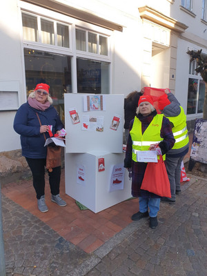 Die Zahlen sind durch das Bundesministerium für Bildung, Familie, Senioren, Frauen und Jugend abgesichert. In Ostholstein informierte der SoVD gemeinsam mit den Ortsverbänden Lensahn, Schönwalde und Oldenburg in Holstein auf dem Marktplatz in Neustadt über diese Fakten. Bereits im Vorfeld war im „Reporter“ auf die Aktion hingewiesen worden. Während des Markttages kamen die Aktiven mit zahlreichen Frauen ins Gespräch – nicht nur über den Equal Pay Day, sondern auch über die Aufgaben, Themen und Veranstaltungen des SoVD. Viele Flyer wurden verteilt. Mit symbolischen „Schuhlöffeln“ und dem Hinweis auf die 16 Prozent Lohnlücke sowie dem Slogan „Den Schuh ziehen wir uns nicht an“ setzten die Beteiligten ein sichtbares Zeichen für Lohngerechtigkeit. Gemeinsam mit der Kreisfrauensprecherin Sylvia Böttcher und der Gleichstellungsbeauftragten der Stadt Neustadt, Natalia von Levetzkow, machten die Ehrenamtlichen deutlich: Gleicher Lohn für gleiche und gleichwertige Arbeit ist längst überfällig.
