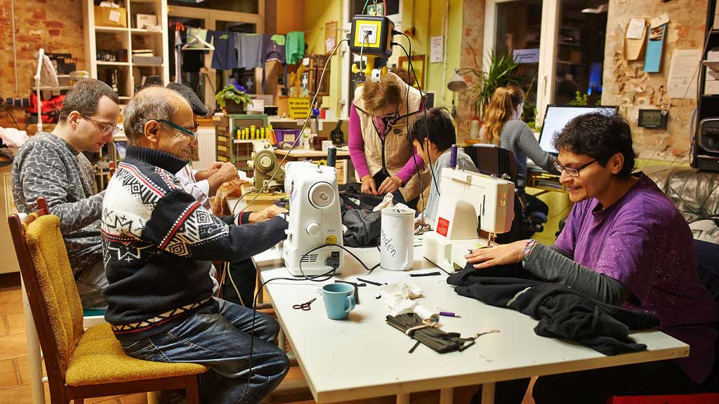 Im „Café kaputt“ helfen Ehrenamtliche bei der Instandsetzung von Alltagsgegenständen. Repariert wird alles – vom Toaster über den Liegestuhl bis zur gerissenen Jeans. Neben Sprachmittler*innen machen auch rollstuhlgeeignete Räume eine inklusive Nutzung möglich. Das Reparaturcafé des Vereins „leben.lernen.leipzig“ setzt sich zudem für Umweltbildungsarbeit ein. Den Engagementpreis gab es in der Kategorie „Grenzen überwinden“.