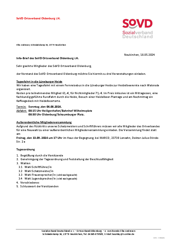 Einladungsbrief des Ortsverbands Oldenburg in Holstein