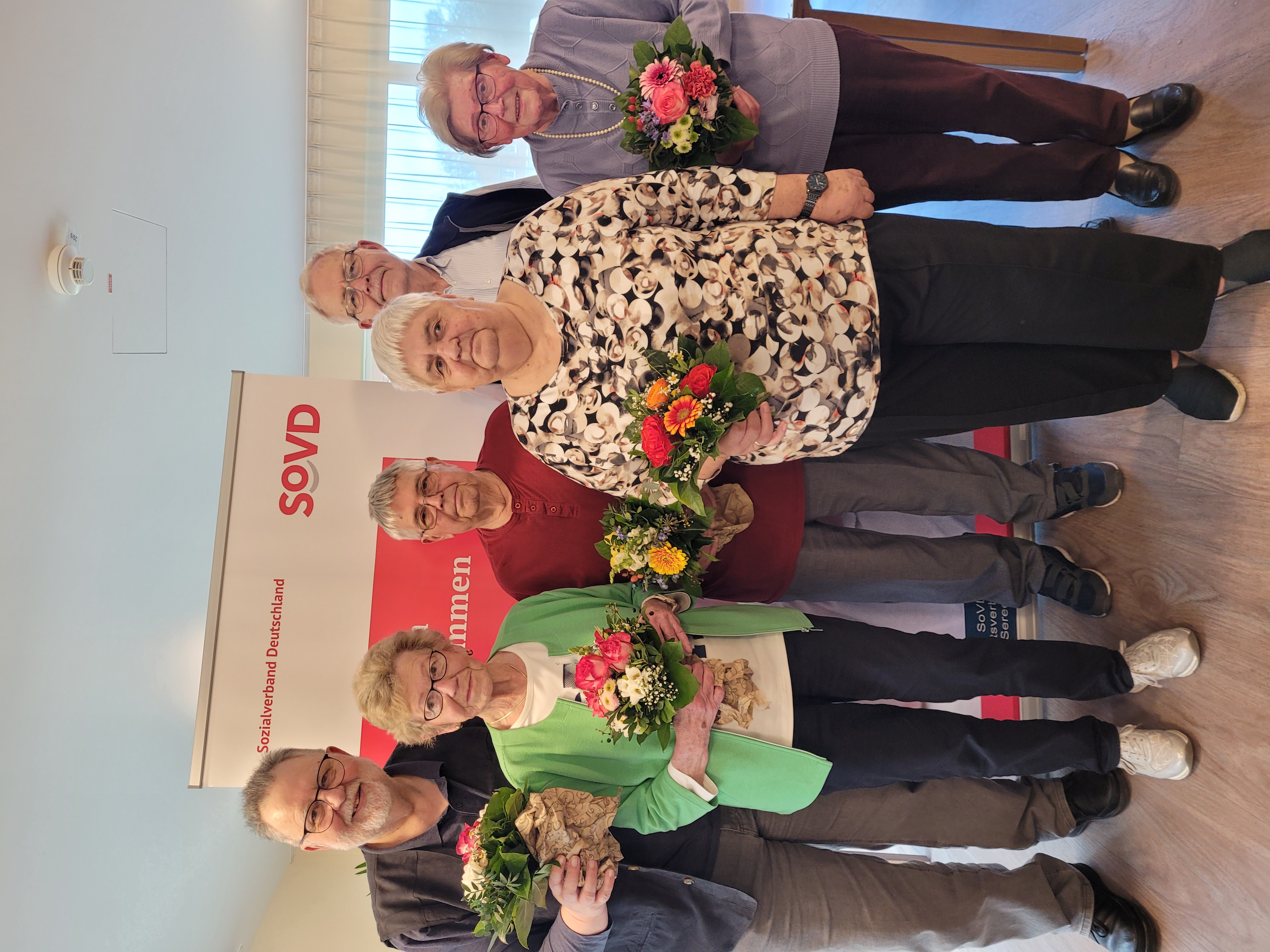 Für ihre jahrelange Treue zum Sozialverband ehrten Prof. Ingo Heberlein und Kurt Fischer die anwesenden Jubilare mit Urkunde, der Treuenadel und einem Blumenpräsent. Zusätzlich ausgezeichnet wurden Irmgard Scheel für 15 Jahre ehrenamtliche Tätigkeit im Ortsverband und Inge Henning für 10 Jahre Arbeit im Ehrenamt. Unter anderem standen die turnusmäßigen Wahlen auf der Tagesordnung.