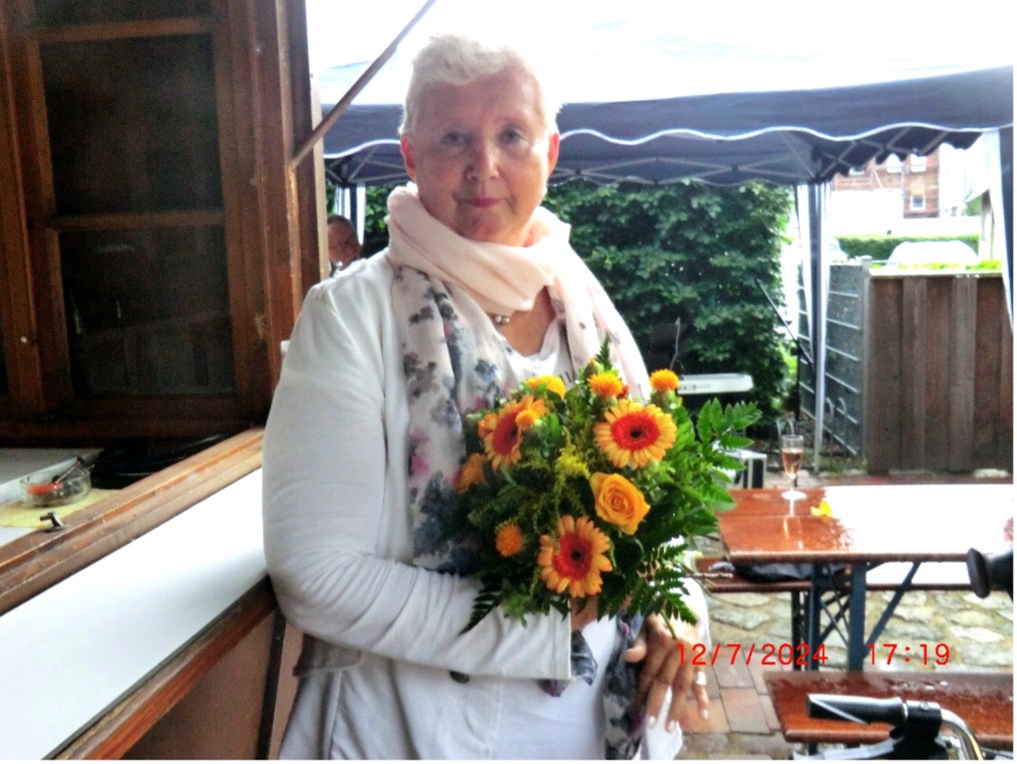 überreichten Heidemarie Kunze und Barbara Matthiensen und einen Blumenstrauß an Frau