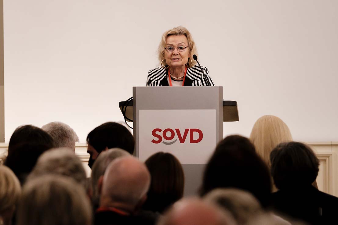 Die neue SoVD-VorstandsvorsitzendeMichaela Engelmeier wandte sich in ihrer Rede an die Politik und machte klar: „Wir müssen jetzt gemeinsam durch ein paar schwierige Jahre kommen. Das geht nur mit Solidarität, mit Zusammenhalt. Dazu muss die Regierung deutlich machen, dass sie niemanden im Regen stehen lässt.“