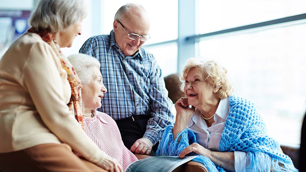 Vier alte Menschen sitzen beieinander