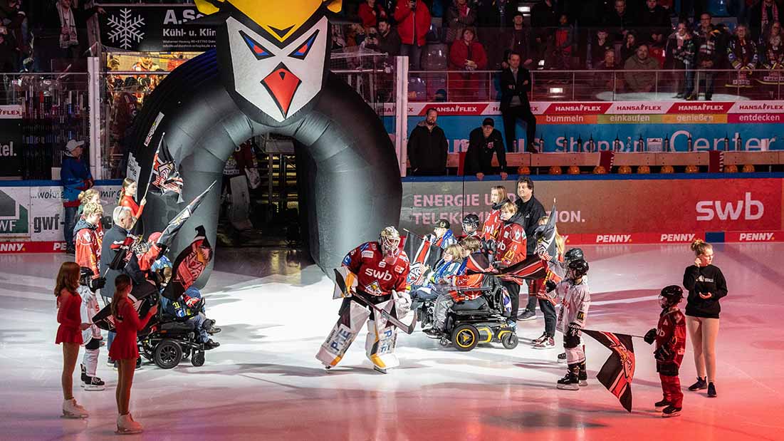 Inklusion bricht das Eis - Nordic CAMPUS, das Berufsbildungswerk des SoVD im Nordwesten, war Teil beim Inklusionsspieltag der Deutschen Eishockey-Liga (DEL).