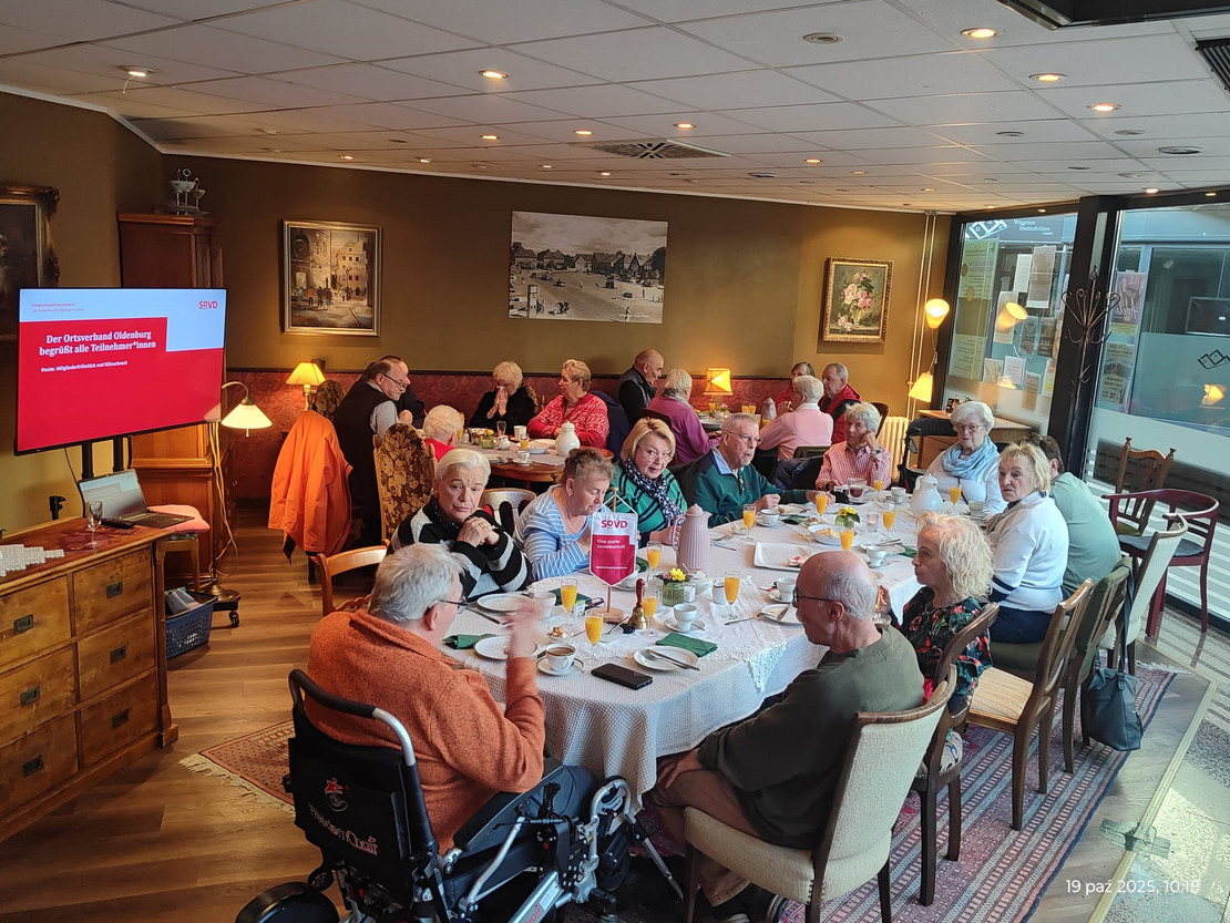 Als Anlauf- und Kontaktstelle für Mitglieder und für Interessierte bieten wir in ehrenamtlicher Regie regelmäßige Zusammenkünfte, Informationsveranstaltungen mit sozialpolitischem Inhalt, allgemeine Vorträge, gemütliche Runden und Feiern, Tages- und Mehrtagesfahrten und noch einiges mehr an. Das Motto unseres Ortsverbandes in Oldenburg lautet „gemeinsam statt einsam“.